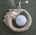 Drachenanhänger aus Silber mit blauer